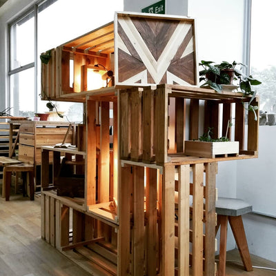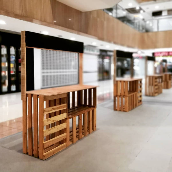 We specialise in making retail booths and pop-up booths out of sustainable materials like pallet pine, local fallen trees and eco-friendly plywood.